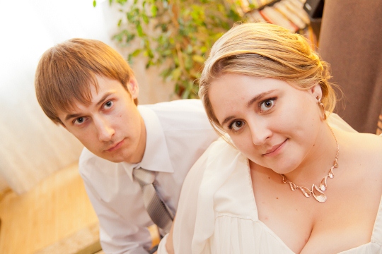 При росписи(поднимались на лесенку) я чуть не упала (виновато платье). В ЗАГСЕ с нами были дети - сожалею. Хоть и детишки сами по себе молчаливые,но они как знали - в самые важные моменты они начинали трындеть.