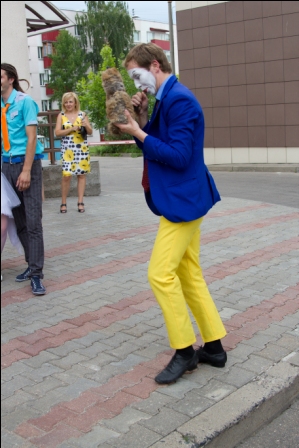 вот он - танец наш!!! :dan: стали по местам, звучит музыка...Паша вышел, я потом..иду, смотрю на него и слезы на глазах!!!!!! :roll: первое па! и до меня доходит: я рано вышла!! стоим, смотрим друг на друга, меня пробирает на ржач :roll: музыка пошла дальше, мы крутимся, а я ору шепотом Паше на ухо, что танец-то я забыла!!! :roll: он на меня вытаращился, делать-то что?! все это происходит в считаные секунды!!а потом оно как-то все собой получилось :mrgreen: мы отплясали на славу) я не видела лиц, не знала, что я делаю, краем глаза заметила, что Паша сбился разок, но мы все равно пляшем!! :dan: пляшем так, что у Паши отвалилась бутоньерка :mrgreen: