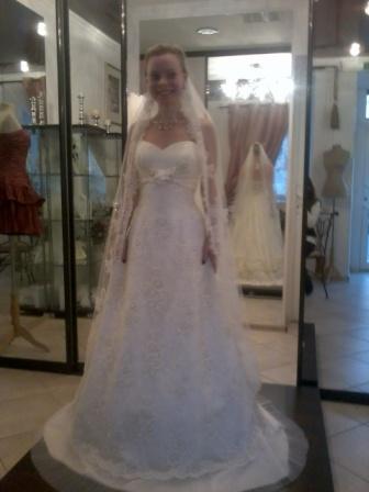 Мерила короткую фату, так с подружкой наржались, вот не идет она мне просто, ну никак. Я как подстреленая в ней..))))))))) Hellga писал(а): Натуфлик, ты во всех платьях прехорошенькая! Тебе просто идет быть невестой!  До вчерашнего дня как-то и не верилось, а как одела платице с длинной фатой, так чуть не прослезилась... Жалко, что в "Романсе" нет проката((((((((((