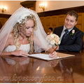 Здесь уже и начинается торжественная церемония регистрации брака. Невеста и жених стоят в центре зала, им задают традиционные вопросы, молодожены отвечают. После этого молодожены подписывают документ, который подтверждает их добровольное согласие о вступлении в брак. Жених ставит подпись первым, затем невеста, а потом уже свидетели.