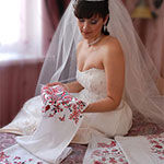 Символика свадебного рушника. Священными ранее считалось наличие множества символов: присутствие восьмиугольной звездочки означало Бога, Солнце, а вот волнистая линия – бесконечность жизни, виноградная лоза - символ плодовитости и достатка в доме. Калина олицетворяла всегда красоту девушки, молодости, любви, пара голубей – символ искренности и верности молодоженов, а большие бутоны цветов – дети и продолжение рода. Правая и левая сторона рушника не должны быть идентичными, отличаться друг от друга. На всех свадебных рушниках изображали «Дерево рода», при помощи любой вышивки можно было легко прочитать информацию о всех родственниках невесты и жениха: есть младшие и старшие братья или сестры, тети и дяди, живы или нет их бабушка и дедушка. Белое полотно центра свадебного рушника символизирует большой поток божьего благословения, которое питает все дерево рода. Стоит также отметить, что в настоящее время точное толкование символов мастерами может сильно отличаться и даже противоречить друг другу. Выбирая свои, следует хорошо проконсультироваться с человеком, которому точно доверяете, а после прислушаться к своей интуиции. Хорошо, если по наследству остался рушник прабабушки, прожившей долгую и счастливую жизнь с прадедушкой. Можно брать за основу тот рисунок или просто посмотреть, что именно на нем изображено. Может, вам удастся увидеть некоторую связь между уже вышитым рисунком и жизнью ваших любимых родственников.